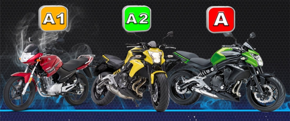Se skuinou A1 lze řídit lehké motocykly s postranním vozíkem nebo bez něj o výkonu nejvýše 11 kW a s poměrem výkonu/hmotnosti nejvýše 0,1 kW/kg a se zdvihovým objemem spalovacího motoru nepřevyšujícím 125 cm3.